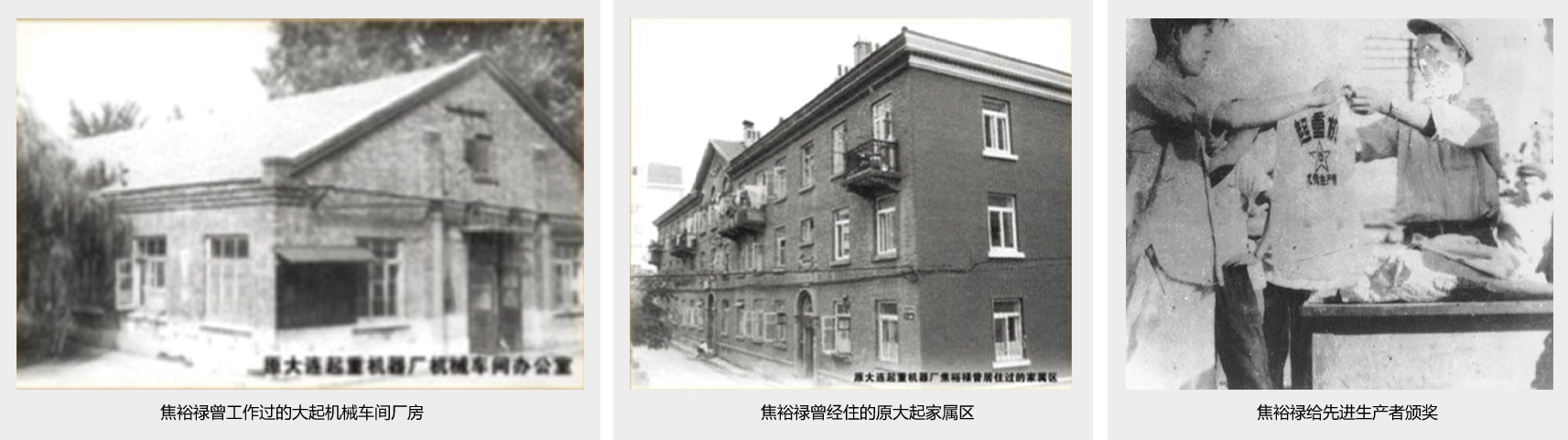 1955年3月至1956年底,焦裕禄受组织委派到大连起重机器厂(即大连华锐重工集团股份有限公司的控股股东——大连重工·起重集团的前身企业,以下简称“大起”)实习,被分配到机械车间任见习主任。在短短的22个月里,他留下了以身作则、廉洁奉公、深入细致开展思想政治工作、让住房、关心职工疾苦、与工人同吃同劳动、加班加点抢任务、攻技术难关等许多感人的故事。